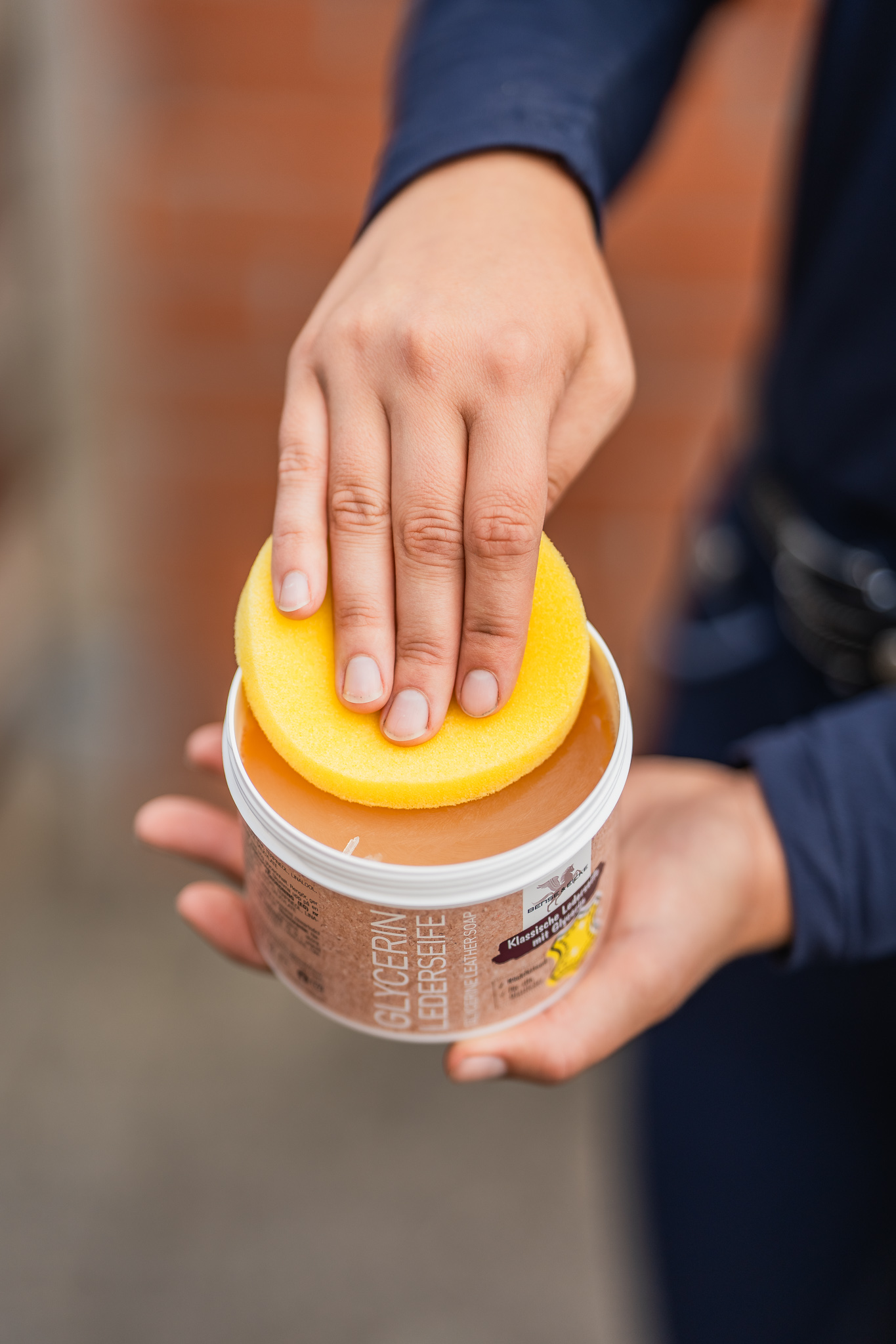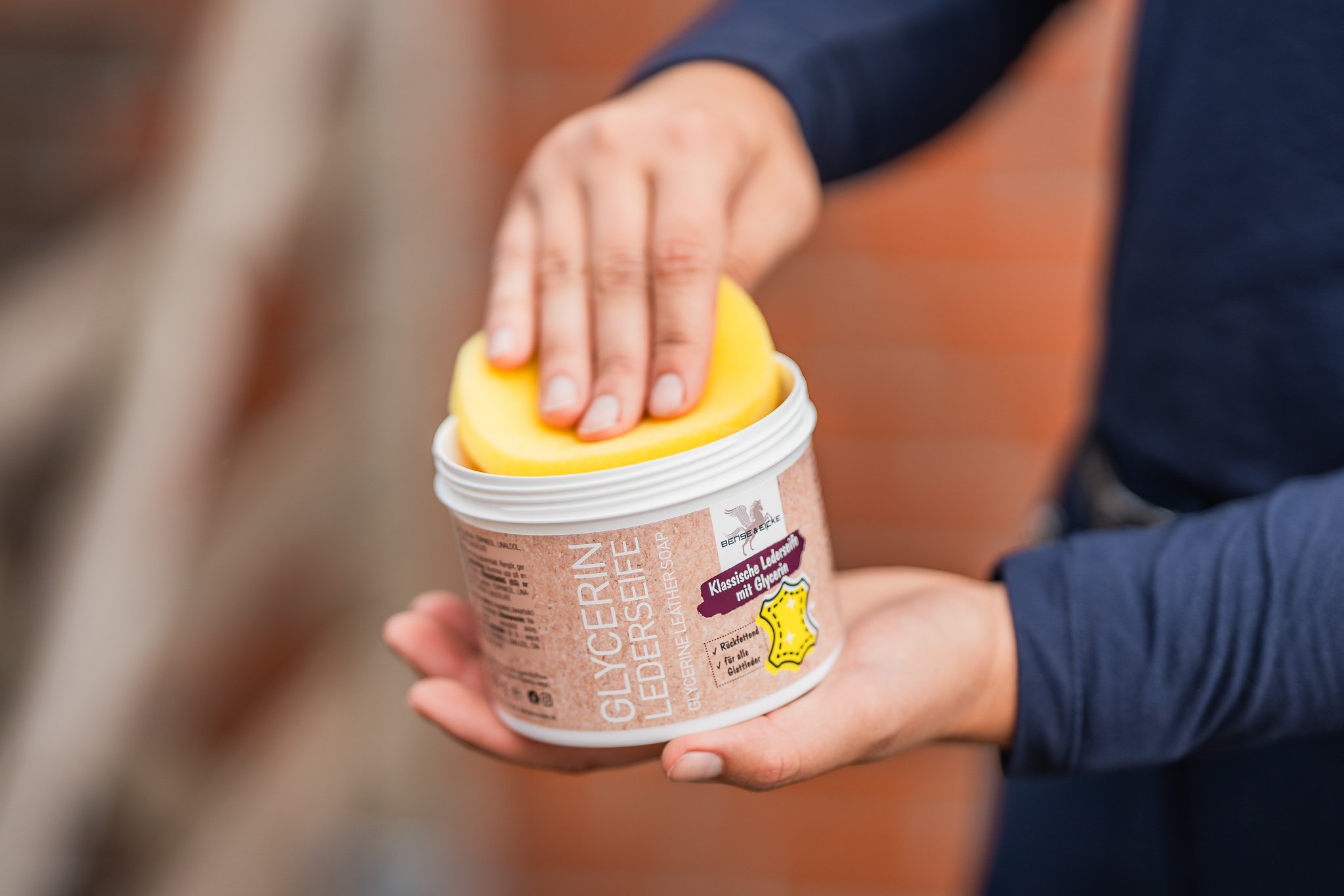 Glycerin Lederseife ab sofort in der Dose mit Schwamm: mit sehr hohem Glycerinanteil für eine gründliche Reinigung.