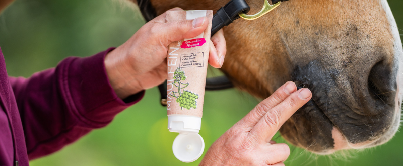 Gentle skin care with rosemary. High quality, preservative-free lipid cream. Cares, keeps skin supple and protects against harmful environmental influences. Especially well suited to complementary care of the tail root, pastern and scars etc.